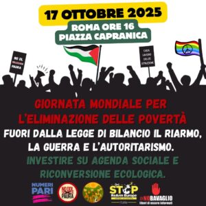 17 ottobre Giornata mondiale per l’Eliminazione delle povertà, manifestazione a Piazza Capranica a Roma