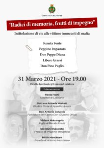 Alle 19.00 vi sarà un momento di ricordo e di approfondimento con una diretta sulla pagina Facebook del Comune di Galatone con la partecipazione di: