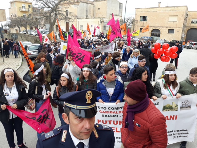 Non c’è stata partecipazione indotta ma sentita in ogni sua parte. A Salemi a coinvolgere i ragazzi ci sono stati i giovani dell’associazione “Peppino Impastato”, gli scout, la scuola polivalente Garibaldi-Giovanni XXIII diretta dal preside Salvino Amico, c’era anche l’amministrazione comunale che ha ereditato il Comune da una amministrazione dove la mafia aveva messo le sue mani, profittando di un sindaco, Vittorio Sgarbi, che qui a Salemi era venuto a dire che la mafia non esisteva più. E invece le indagini fino a pochi giorni addietro hanno dimostrato che a Salemi, Cosa nostra siciliana aveva uno dei suoi più agguerriti quartieri generali. Una serie di murales hanno colorato la città per restare intangibili, testimoniando, attraverso l’arte, che a Salemi non c’è più spazio per mafiosi e mafiosetti.