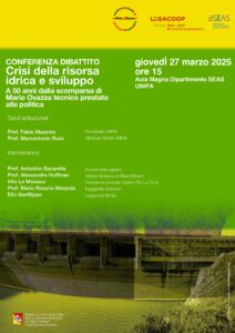 “Crisi della risorsa idrica e sviluppo” è il tema del convegno che, alle 15 di giovedì 27 marzo, nell’aula magna del Dipartimento Seas Unipa, in viale delle Scienze, ricorderà Mario Ovazza, un “tecnico prestato alla politica”.