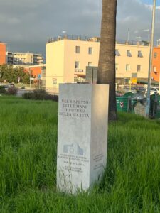 (Nella foto il cippo da cui è stata derubata la scultura nei pressi della stazione autolinee di Latina)