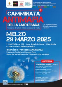 Melzo si prepara ad accogliere la terza edizione della Camminata contro le mafie promossa da Libera, che quest’anno compie trent’anni di attività, in programma il prossimo 29 marzo a partire dalle 9.30.