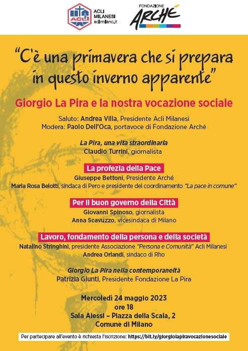 «C’è una primavera che si prepara in questo inverno apparente» è questa la citazione di Giorgio La Pira che dà il titolo al convegno organizzato dalle ACLI milanesi e da Fondazione Arché il 24 maggio a Palazzo Marino a Milano.
