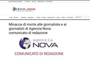«Ci hanno augurato di morire a Gaza, di ammalarci di cancro, ci hanno dato dei fascisti e dei servi. Ci teniamo a difendere, da lavoratori di un settore già in difficoltà, la nostra professione e l’attività di un’agenzia che in poco più di venti anni si è imposta come una delle più affidabili fonti in Italia, sui temi della politica e dell’informazione nazionale ed internazionale». È quanto si legge in un comunicato della redazione dell’Agenzia Nova «approvato all’unanimità dai giornalisti presenti in redazione in data 6 novembre 2025» e pubblicato anche sul sito web dell’agenzia.