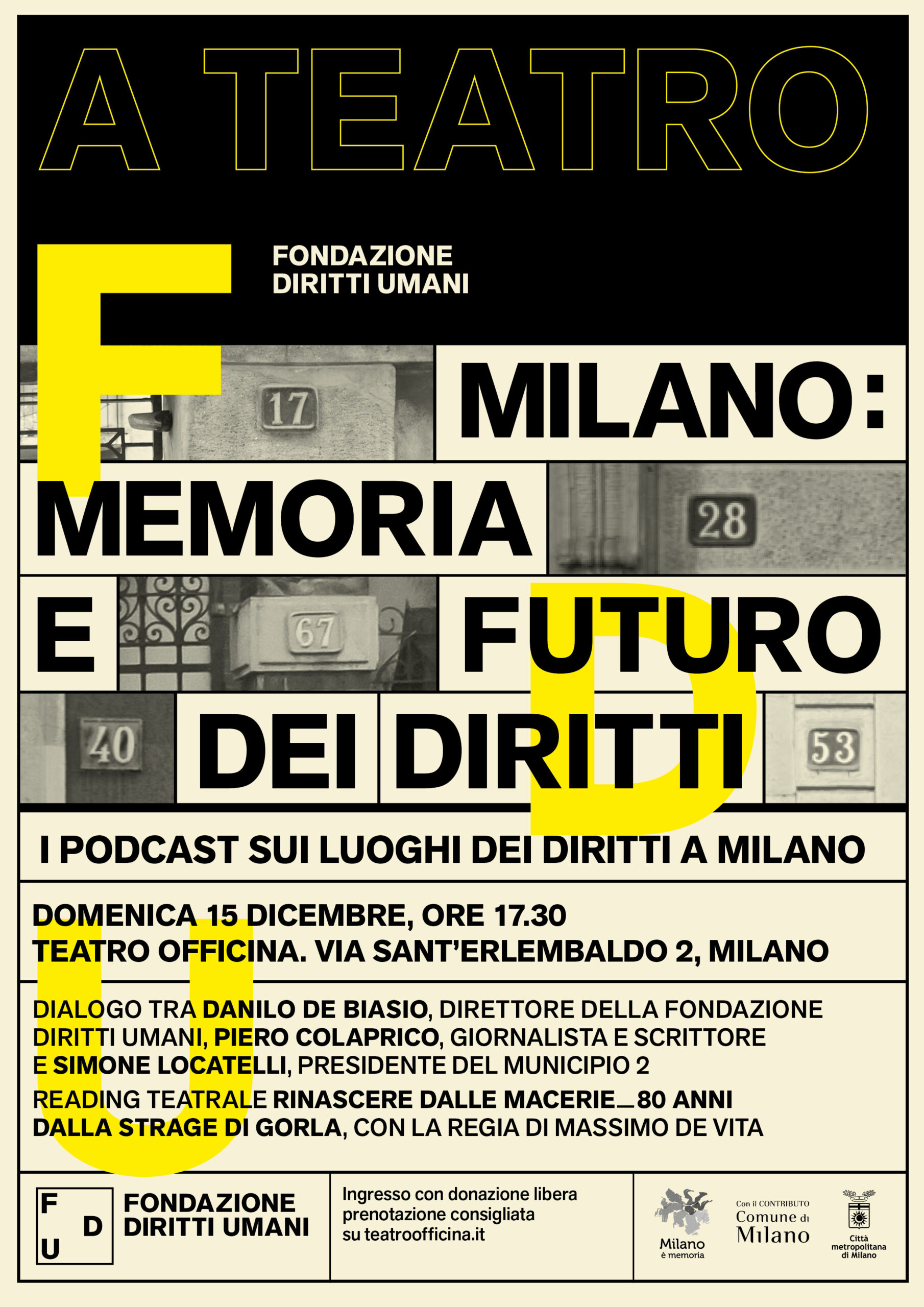 Sono nati così 5 nuovi podcast di Milano Memoria e Futuro dei Diritti, che abbiamo realizzato nell’ambito del progetto del Comune Milano è Memoria. Storie a volte lontane ma con una forza di attrazione e una attualità che meritano di essere scoperte. Facciamolo insieme, domenica 15 dicembre al Teatro Officina.