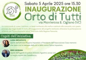 Sabato 5 aprile saremo presenti all’inaugurazione dell’Orto di Tutti, frutto del riutilizzo sociale di un terreno confiscato alla criminalità organizzata da parte dell’associazione Sogni Scalzi.