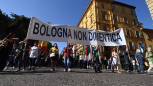 Oggi  2 agosto a Bologna si torna in corteo per ricordare la Strage con il minuto di silenzio annunciato dai fischi del treno alle 10,25 in memoria delle persone assassinate da una bomba neofascista. Il corteo che si snoderà da piazza Nettuno alla Stazione passerà su 85 “Sanpietrini della memoria” con i nomi delle vittime. Le pietre d’inciampo sono state posate a perenne ricordo di che perse la vita durante la Strage..