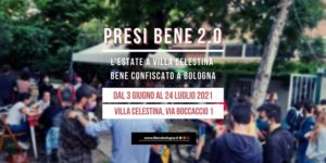 Ci siamo! Giovedì 3 giugno alle 18 si riaccendono le luci di Villa Celestina con “Presi bene 2.0 – L’estate nel bene confiscato”, la rassegna estiva di Libera Bologna nel primo bene confiscato riutilizzato a fini sociali nel comune di Bologna.
