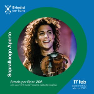Nell’ambito del percorso di co-progettazione sui Beni Confiscati di Brindisi, vi ricordiamo l’appuntamento di sabato 17 febbraio: beni aperti con musica e arte, dalle 9:30 alle 12:00 presso Strada per Sbitri 206 (Brindisi)