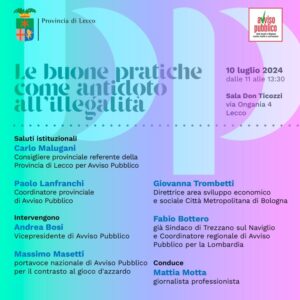 “Buone pratiche antidoto all’illegalità”, il 10 luglio un seminario di Provincia di Lecco e Avviso Pubblico