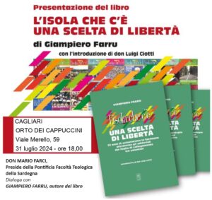 Giampiero Farru, presidente del CSV Sardegna Solidale, presenta il libro “L’Isola che c’è. Una scelta di libertà”, e dialogherà con don Mario Farci, Preside della Pontificia Facoltà Teologica della Sardegna.