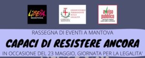 Al via dal 13 al 29 maggio a Mantova la rassegna di eventi sulla legalità “Capaci di resistere ancora”, promossa da Libera, Osservatorio permanente sulla Legalità del Comune di Mantova e Avviso Pubblico.