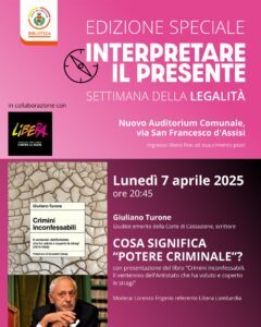 Giuliano Turone (Giudice emerito della Corte di Cassazione, scrittore) con presentazione del libro “Crimini inconfessabili. Il ventennio dell’Antistato che ha voluto e coperto le stragi” (Solferino 2024)