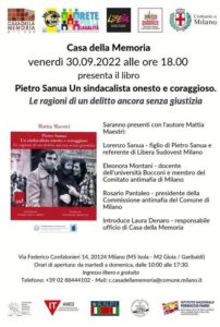 “Pietro Sanua: un sindacalista onesto e coraggioso. Le ragioni di un delitto ancora senza giustizia”