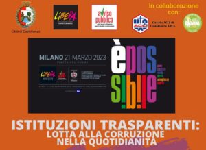 Nel percorso verso il 21 Marzo 2023 si inserisce la serata che si terrà il martedì 14 marzo alle ore 20.45 presso la sala conferenze della Biblioteca Civica di Castellanza in piazza Castegnate 2bis (con ingresso libero) che ha come titolo “Istituzioni trasparenti: lotta alla corruzione nella quotidianità”, e che rappresenta un momento di approfondimento e riflessione sulle tematiche della legalità e della lotta alla mafia.