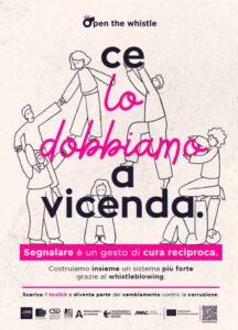 In Italia, hanno collaborato l’Autorità Nazionale Anticorruzione (ANAC), l’associazione Libera contro le mafie e l’Università di Pisa. “Segnalare o denunciare la corruzione è un gesto di cura reciproca”. Basterebbe questa frase per riassumere il cuore dell’iniziativa comunicativa che, in tutta Europa, sta conducendo la rete responsabile del progetto Open The Whistle. Fino a dicembre la campagna prenderà forma e visibilità negli spazi fisici di enti pubblici e privati, delle Autorità nazionali e degli enti del terzo settore, così come negli spazi digitali delle piattaforme social.
