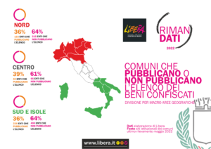 Il Report di Libera (monitoraggio ha avuto inizio nel mese di aprile 2022 e si è chiuso a luglio 2022) rappresenta uno spaccato importante -unico nel suo genere- sulla capacità degli Enti territoriali di rendere pienamente conoscibili e accessibili le informazioni sull’enorme patrimonio immobiliare sottratto alle mafie e destinato a tornare alla collettività attraverso comuni ma anche, sebbene in via sussidiaria, le province, città metropolitane e le regioni.