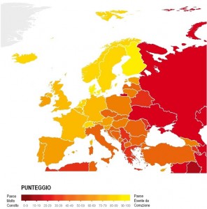 Sono 24 i candidati alla circoscrizione estero, ripartizione Europa, che che aderiscono a Riparte il futuro. Un numero apparentemente esiguo che corrisponde tuttavia a un buon 23,5% rispetto ai 102 nomi in lista tra Camera (79) e Senato (23). I 24 hanno risposto alle 5 richieste di trasparenza di Riparte il futuro pubblicando online cv, reddito e patrimonio, situazione giudiziaria, conflitti di interesse e impenandosi a potenziare nei primi 100 giorni di legislatura l’art. 416 ter del CP sullo scambio elettorale politico mafioso. Li trovate cliccando su Europa nella mappa dei candidati trasparenti (ricordiamo anche che l’Italia è la terzultima europea in classifica per livello di corruzione percepita, vedi grafico di Transparency International) .