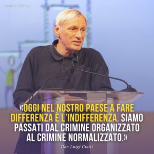 Oggi nel nostro Paese a fare differenza è l’indifferenza. Siamo passati dal crimine organizzato al crimine normalizzato, perché nella testa degli italiani è diventato uno dei tanti problemi, ed è inquietante perché le mafie si alimentano della droga, che cattura fasce di giovani, nuove sostanze, poteri forti. Lo scandalo di leggi inadeguate, furbe, di parte come quelle sul gioco d’azzardo che mina la vita di tanti.