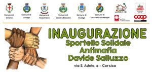 Verrà inaugurato sabato 15 aprile a Corsico, in provincia di Milano, lo “Sportello solidale antimafia Davide Saluzzo”, aperto nei locali di via Sant’Adele 2 che furono confiscati alla criminalità organizzata e che la scorsa estate sono stati riqualificati dai volontari dei campi “Scegli da che parte stare”.
