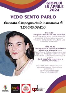 Alle ore 18.00 verrà inaugurata la “via Lea Garofalo”, di fronte all’istituto Torriani di Cremona e alle 19.30 ci sarà una cena presso il Circolo Proletario Arci Carlo Signorini (Via Castellone 7a).