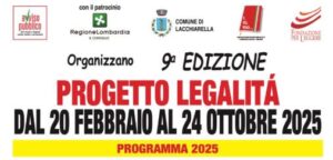 Al via la nona edizione del “Progetto legalità” promosso dal Comune di Lacchiarella (MI). Dal 20 febbraio al 24 ottobre, un fitto ciclo di appuntamenti per ricordare e commemorare le vittime innocenti di mafia e rinnovare l’impegno quotidiano nella nella difesa della carta costituzionale e nella promozione della cultura della cittadinanza attiva e responsabile.Si parte giovedì 20 febbraio con un programma ricco di eventi culturali sul tema della legalità dal titolo “1, 10, 100 Agende Rosse …quale Democrazia?”, realizzati in collaborazione con Avviso Pubblico, l’Associazione Agende Rosse Milano e il Gruppo “Peppino Impastato e Adriana Castelli”.