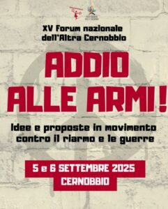 Il 5 e 6 settembre 2025 a Cernobbio (CO) si terrà il XV Forum nazionale dell’Altra Cernobbio: un appuntamento di idee e proposte contro il riarmo e le guerre, per la pace, la giustizia sociale e un’economia di diritti.