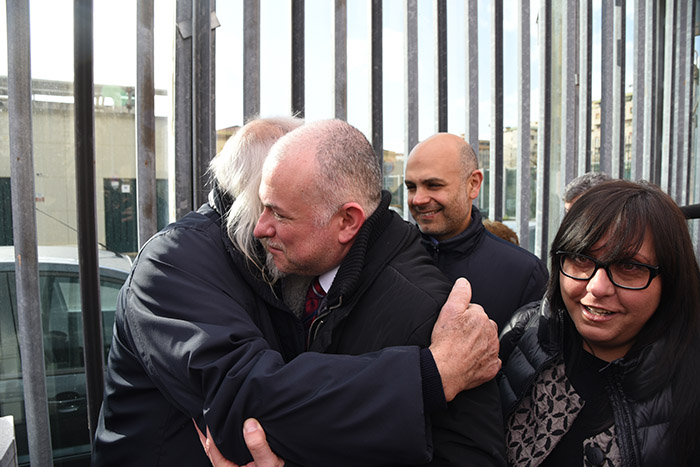 Esce dal bunker anche la famiglia Agostino e la tensione di queste ore, di questi anni, si scioglie nell’abbraccio liberatorio di quanti sono venuti a portare sostegno e amicizia. Anche Flora, la sorella di Nino, ha un lieve malore ma ora il peggio è alle spalle.
