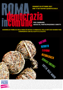 Per queste ragioni e per questi obiettivi le realtà della Rete dei Numeri Pari hanno invitato a confrontarsi durante l’assemblea del 29 ottobre il nuovo Sindaco di Roma, Roberto Gualtieri e gli eletti e le elette che ritengono siano queste le priorità e le modalità per cambiare Roma.