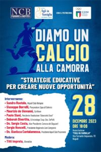 Giovedì 28 dicembre alle ore 18, presso l’associazione Figli in Famiglia, in Via Ferrante Imparato 111, a Napoli, ci sarà l’evento organizzato dal Napoli Club Bologna “Diamo un calcio alla camorra – Strategie educative per creare nuove opportunità”, un momento di incontro e discussione.