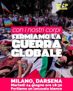 Martedì 24 giugno, alle ore 18:00, la Darsena di Milano ospiterà un nuovo presidio promosso dal comitato Stop Rearm Europe, con un die-in per dire con forza no alla guerra globale e chiedere che il Governo italiano si dissoci da ogni coinvolgimento militare.