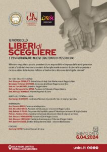 Si terrà il prossimo sabato, 6 aprile alle ore 10.00, presso l’Aula Magna Quistelli dell’Università degli Studi Mediterranea di Reggio Calabria, l’iniziativa dal titolo “Il protocollo Liberi di Scegliere e l’entropatia dei nuovi orizzonti di possibilità”. Lo comunica la segreteria regionale Libera Calabria.