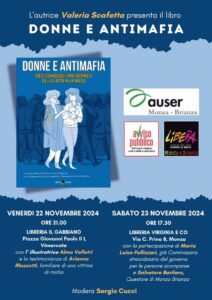 Venerdì 22 Novembre, a Vimercate e sabato 23 novembre a Monza, Libera Monza e Brianza e Auser Monza e Brianza organizzano la presentazione del libro di Avviso Pubblico, Donne e antimafia – Dieci coraggiose protagoniste della lotta alla mafia” (BeccoGiallo Editore, 2022), curato da Valeria Scafetta per Avviso Pubblico in collaborazione con Giulia Migneco e con le illustrazioni di Alma Velletri.