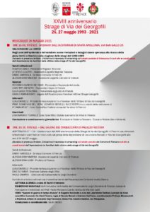 Scopri il programma XXVIII Anniversario Strage di Via dei Georgofili 26, 27 maggio 2021