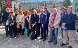 Una festa con autorità locali, cronisti e studenti per celebrare, sabato 1° ottobre 2022, i 16 anni del Monumento alla stampa clandestina e alla libertà di stampa custodito a Conselice (Ravenna).