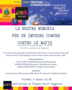 Ascolteremo le parole di parenti di vittime innocenti di mafia, che condivideranno il loro dolore e il loro impegno, perché ricordare non basta: bisogna agire, insieme!