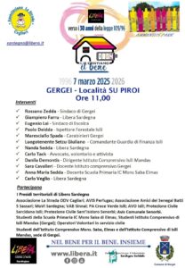 Oltre ai Presìdi territoriali di Libera Sardegna partecipano all’iniziativa i sindaci di Gergei ed Escolca, organizzazioni di volontariato di Isili, Senorbì, Cagliari, Perfugas, Sassari e Sinnai.