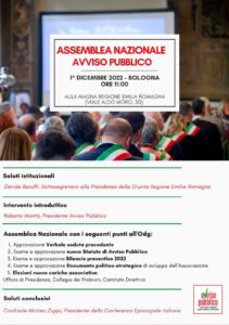 Giovedì 1° dicembre, a Bologna, si svolgerà l’Assemblea nazionale di Avviso Pubblico. La rete degli Enti locali contro mafie e corruzione, che attualmente conta più di 500 soci tra Comuni, Unioni di Comuni, Città metropolitane, Province e Regioni, di cui 70 in Emilia-Romagna. L’incontro si svolgerà in presenza a Bologna, nell’Aula Magna della Regione Emilia Romagna, in Viale Aldo Moro 30.