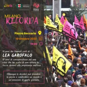 In occasione dei 10 anni dai funerali civili di Lea, il 19 ottobre alle ore 19 ci ritroveremo in Piazza Beccaria per ricordare la scelta di coraggio di Lea e rinnovare l’impegno di memoria di migliaia di milanesi che vollero dare l’ultimo saluto a quel feretro “fisicamente leggero, ma moralmente pesante”.