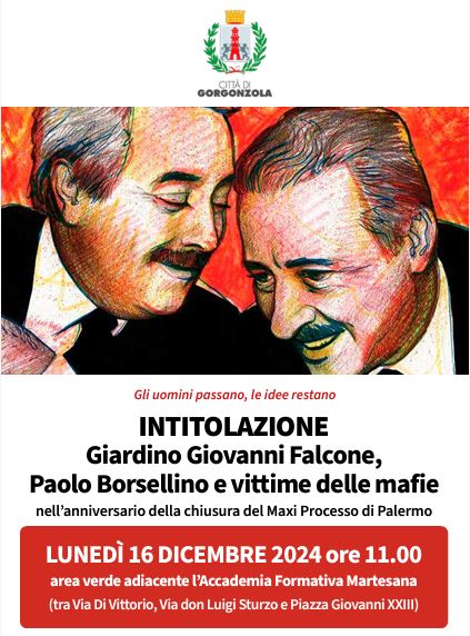 È stato intitolato lunedì 16 dicembre 2024 alle ore 11:00 il Giardino Giovanni Falcone, Paolo Borsellino e vittime delle mafie ubicato tra le vie Di Vittorio e don Sturzo e il nuovo ingresso dell’Accademia Formativa Martesana.