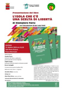 Si terrà lunedì 21 ottobre 2024 alle ore 16,30 presso la Sala Remo Branca, in Piazza Municipio ad Iglesias la presentazione del libro di Giampiero Farru “L’isola che c’è. Una scelta di libertà”, 33 anni di volontariato in Sardegna attraverso gli editoriali del foglio di collegamento tra volontari, con introduzione a cura di Don Luigi Ciotti.
