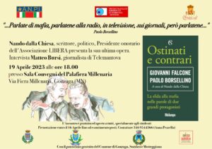 I Comuni di Gonzaga, Suzarra e Motteggiana organizzano per mercoledì 19 aprile alle 18.00, presso il Teatro comunale di Gonzaga (MN), la presentazione del libro curato da Nando Dalla Chiesa, “Ostinati e contrari – La sfida alla mafia nelle parole di due grandi protagonisti: Giovanni Falcone e Paolo Borsellino” (Solferino/Melampo, 2022).