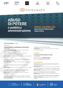 Lunedì 9 Dicembre 2024, dalle 09:30 alle 16:30, presso la Sala d’onore, Palazzo Donini – Regione Umbria, l’Università degli studi di Perugia organizza il convegno “Abuso di potere e pubblica amministrazione”.