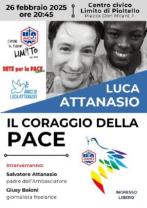 Il 26 Febbraio alle ore 20.45 si terrà al Centro civico Limito di Pioltello l’intervento di Salvatore Attanasio che ricorderà la figura del figlio, l’ambasciatore Luca Attanasio, e sarà accompagnato dalla giornalista Giusy Baioni.