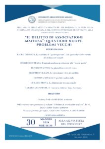 Nell’ambito delle attività del dottorato in Studi sulla criminalità organizzata e del corso di Strategie di contrasto alla criminalità organizzata si terrà l’incontro “il delitto di associazione mafiosa”: questioni nuove, problemi vecchi durante il quale interverranno dottorandi e dottorande, ricercatori e ricercatrici. Modera la scrittrice Sara Loffredi.