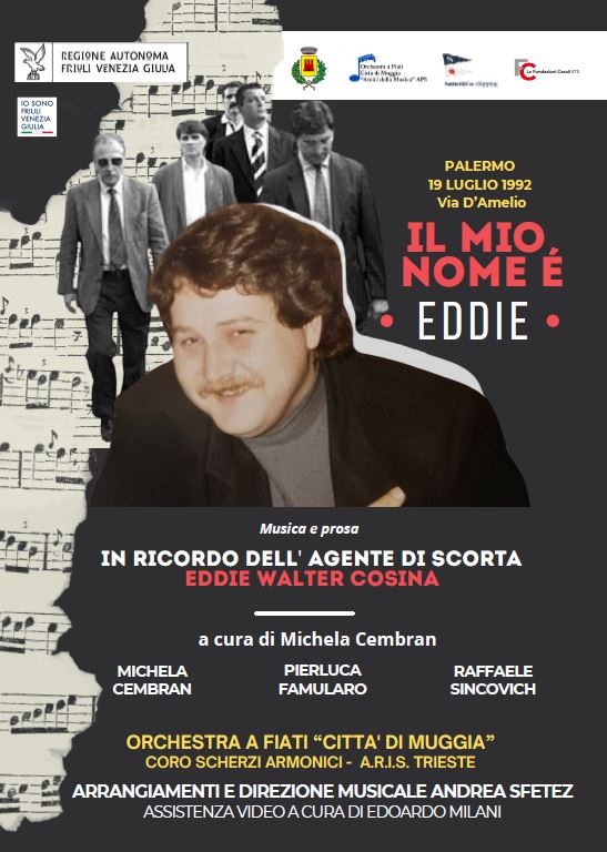 Venerdì 15 novembre alle 20.45 al Teatro Comunale “Giuseppe Verdi” “Il mio nome è Eddie” spettacolo in ricordo dell’agente di scorta Eddie Walter Max Cosina, a cura di Michela Cembran.