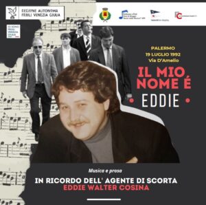 Venerdì 15 novembre alle 20.45 al Teatro Comunale “Giuseppe Verdi” “Il mio nome è Eddie” spettacolo in ricordo dell’agente di scorta Eddie Walter Max Cosina, a cura di Michela Cembran.
