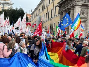 “Non può esserci pace senza una giustizia sociale e ambientale” è invece il senso della riflessione espressa sul palco di piazza San Giovanni da Giuseppe De Marzo della Rete dei Numeri Pari.