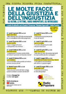 Lunedì 19 aprile ore 21.00 in diretta streaming YouTube sui canali: “Scuola di Formazione Antonino Caponnetto” e “Radio Popolare” la settima lezione del nuovo ciclo “Le molte facce della giustizia e dell’ingiustizia. Gli ultimi, le vittime, i boss onnipotenti, gli intoccabili”, organizzato dalla Scuola di Formazione Antonino Caponnetto in collaborazione con Radio Popolare.