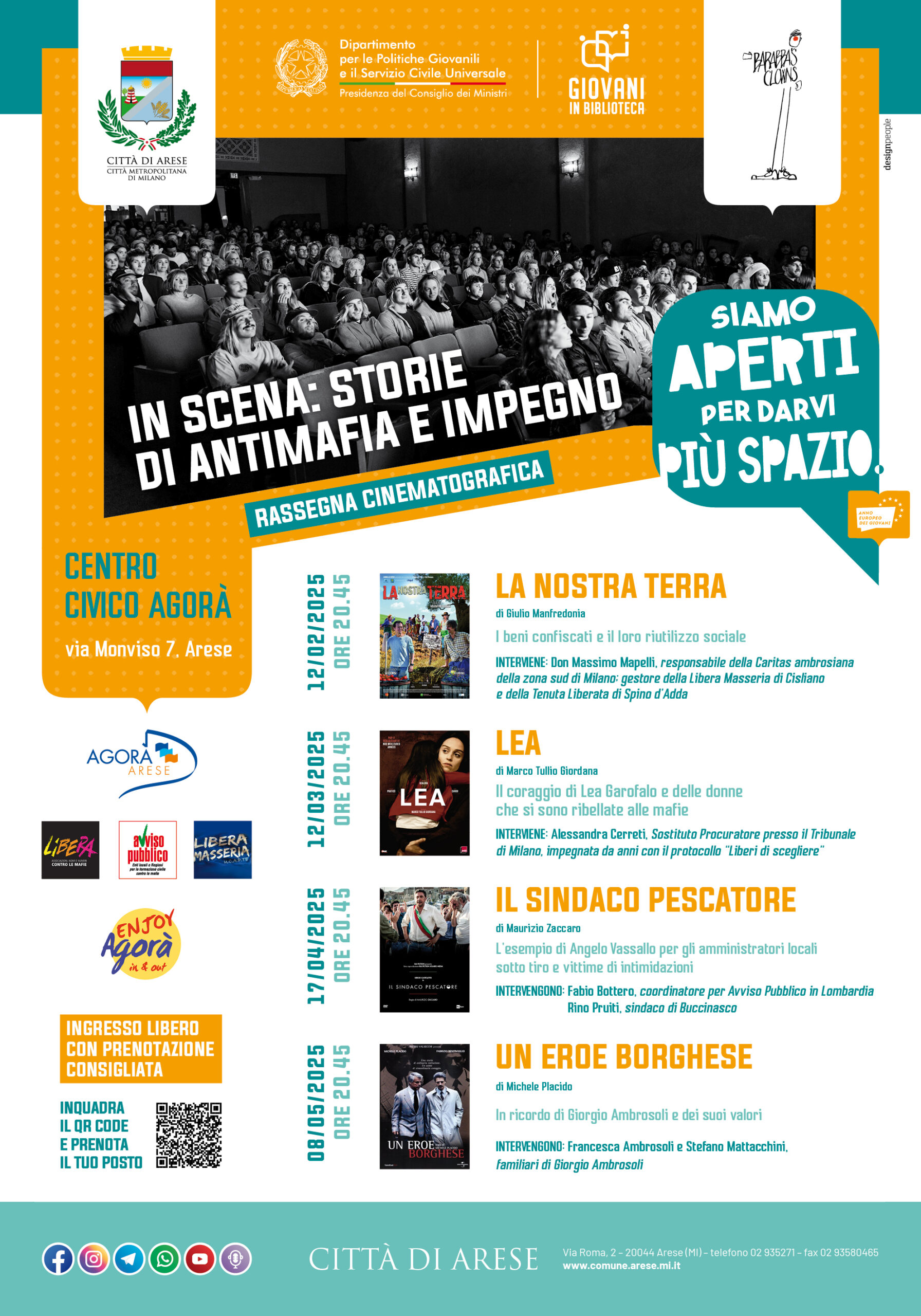 Il ciclo di proiezioni, con cadenza mensile fino a maggio, vuole far conoscere alla cittadinanza importanti produzioni cinematografiche che sviluppano i temi della legalità e del contrasto alle mafie, toccando temi come il riutilizzo sociale dei beni confiscati, il lavoro etico, il protagonismo femminile nel contrasto alle mafie, il ricordo delle vittime innocenti delle mafie e il coraggio degli amministratori locali sotto tiro.